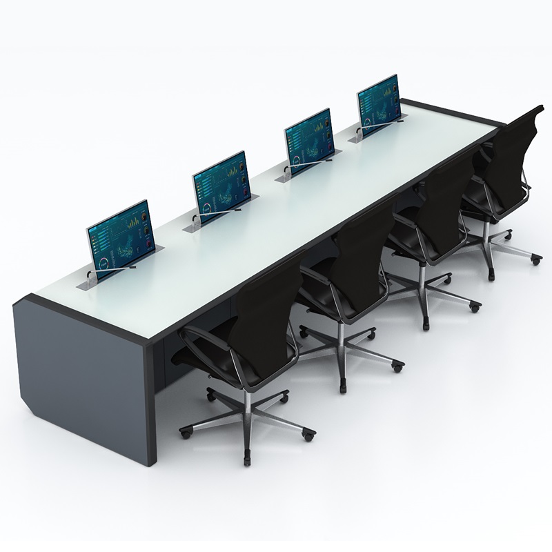 2) Cooling System: The main components inside the control console are standard PCs. To avoid noise issues caused by forced fan cooling, the design fully considers natural ventilation and heat dissipation when the console is full of PCs. Yingxin Jingtai emphasizes ventilation and heat dissipation design, protecting the health of operators and ensuring no leg obstruction. This is a more humane design for employees who sit in front of the control console for long periods. When purchasing the main unit, the cooling method may vary depending on the materials used.